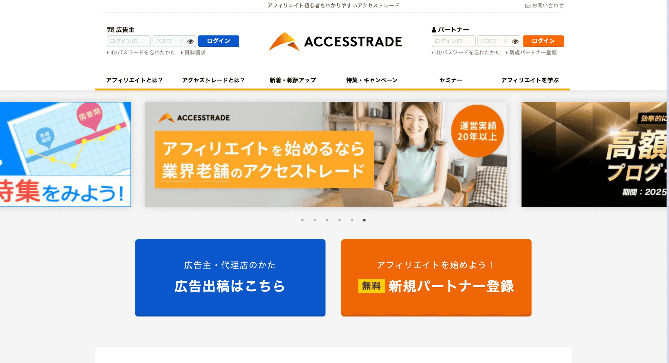 「Accesstrade(アクセストレード)」は、金融系や通信などのジャンルに特化しています。