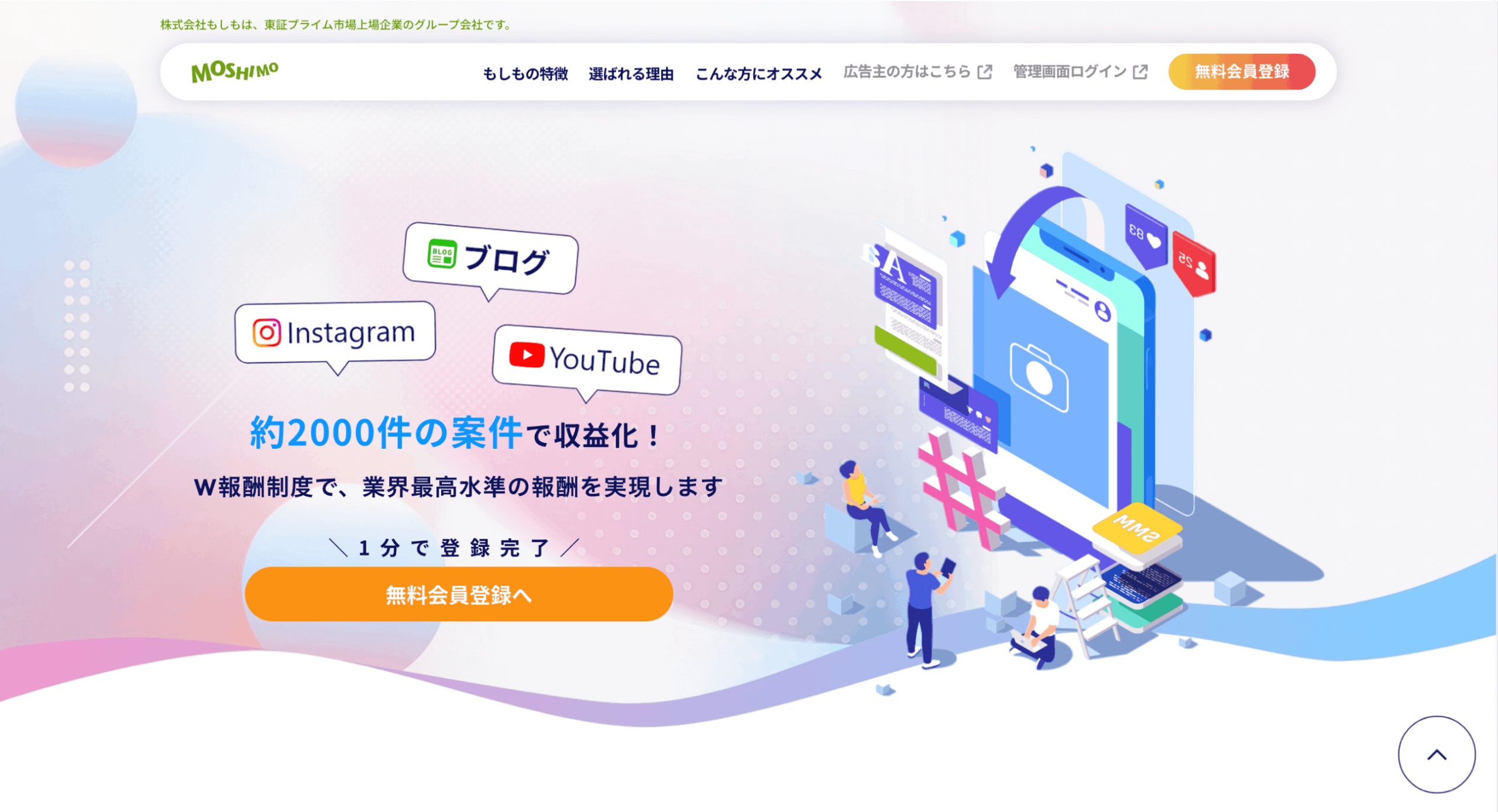 もしもアフィリエイトは、アフィリエイト業界初の『W報酬制度』があるよ!