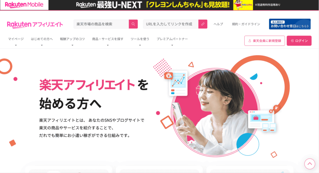 「楽天アフィリエイト」は、楽天市場で販売の商品すべて取り扱えます。