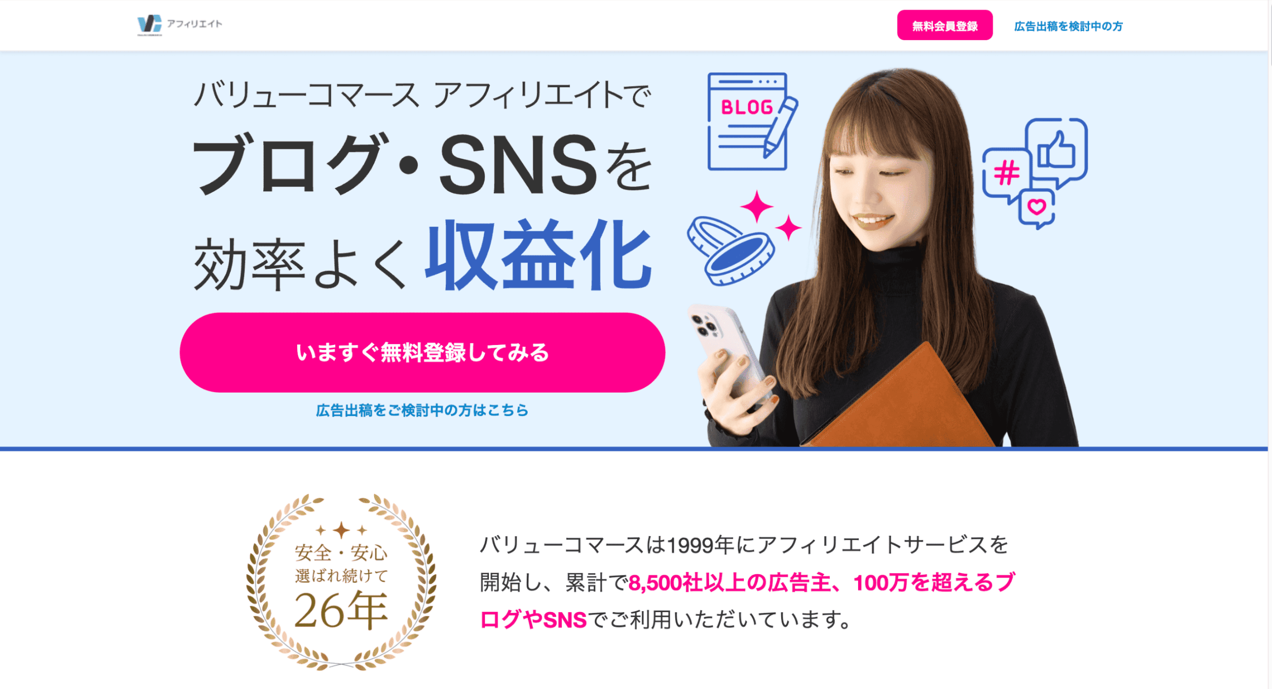 日本で初めてアフィリエイトサービスを開始しているので、大手企業からの信頼度が高いです。