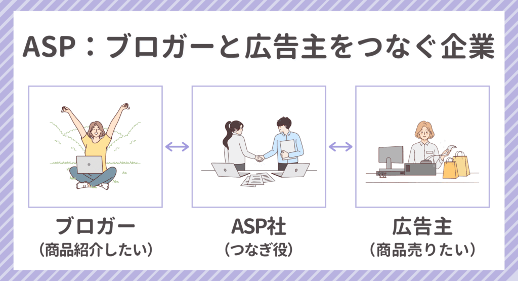 ASPが仲介役をしてくれるおかげで、ブロガーと広告主はWinWinだね!