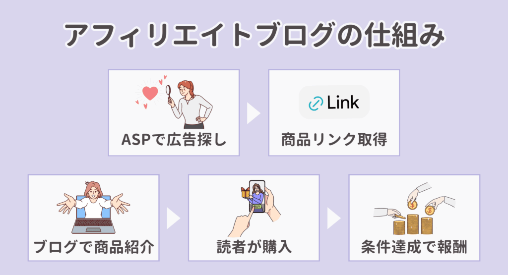 つぎは、アフィリエイトブログの仕組みを解説します。