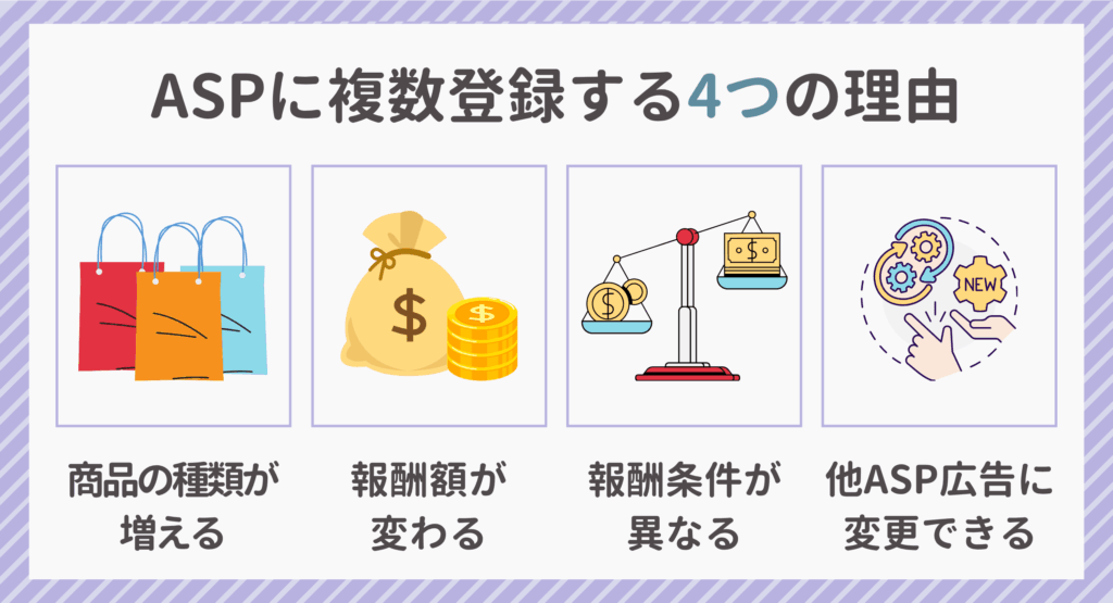 アフィリエイトで稼ぎたい初心者さんは、ASPに複数登録すべき4つの理由があります。