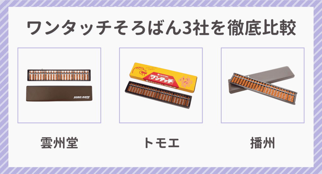 ワンタッチのメーカーは「トモエ・雲州堂・播州」が人気があるので、そろばん歴8年で四段のわたしが3社に絞って徹底比較します。