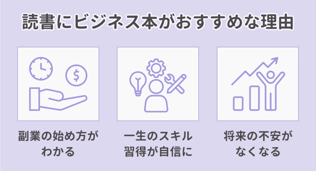 ビジネス書って分厚くてむずかしい内容をイメージしがちだけど、初心者向けの本を選ぶと読みやすいよ!
