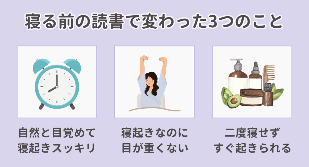 わたしがは寝る前の読書で変わったことは、以下の3つです。
