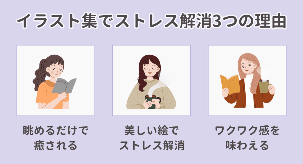 イラスト集でストレス解消できる理由は、以下の3つ。