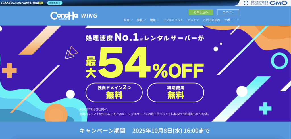 【9月最新】ConoHa WING期間限定キャンペーン10/8 16時まで!評判・口コミを独自調査