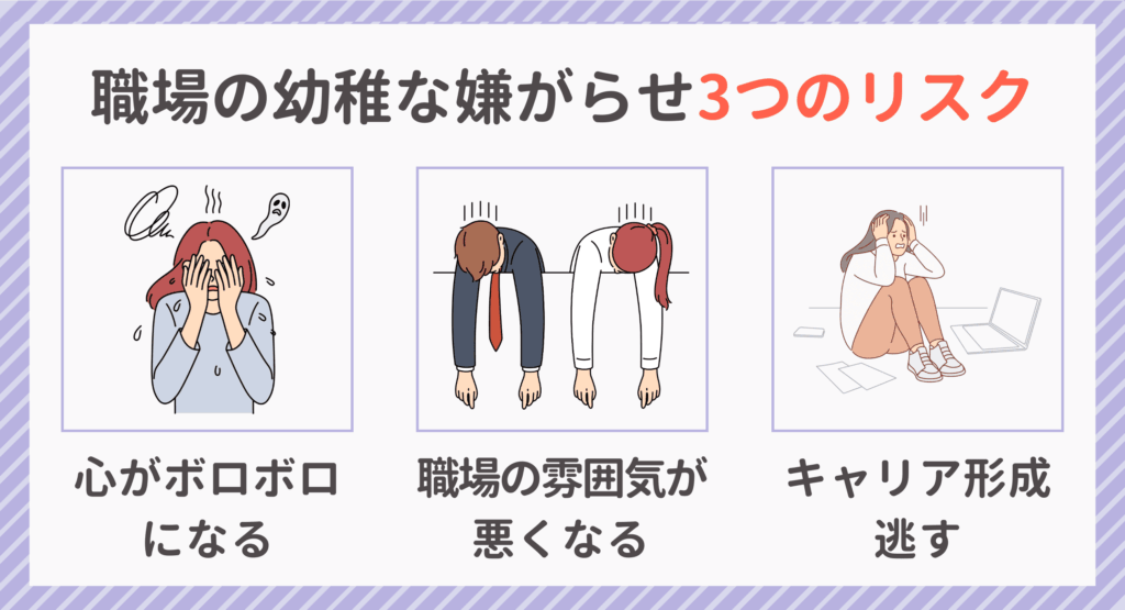 それでは、職場で幼稚な嫌がらせを我慢する3つのリスクを一つずつ解説します。