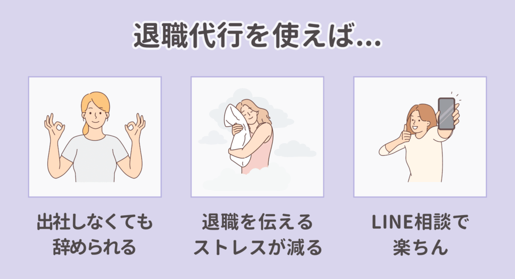 もし、自分で解決するのがむずかしい場合は、退職代行に頼るのも選択肢の1つです。